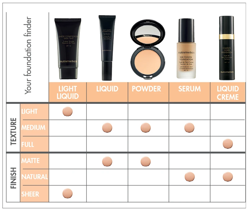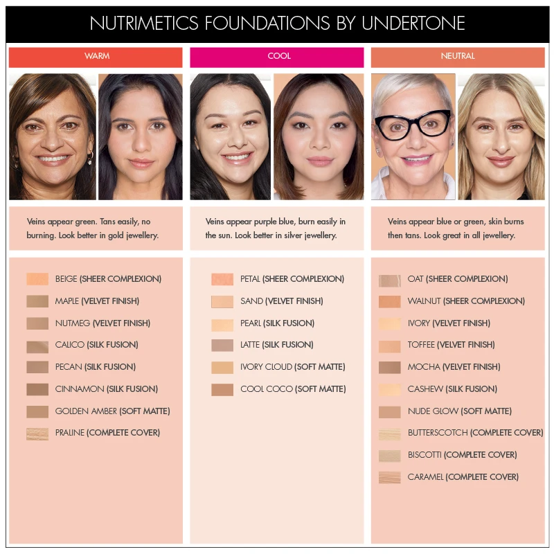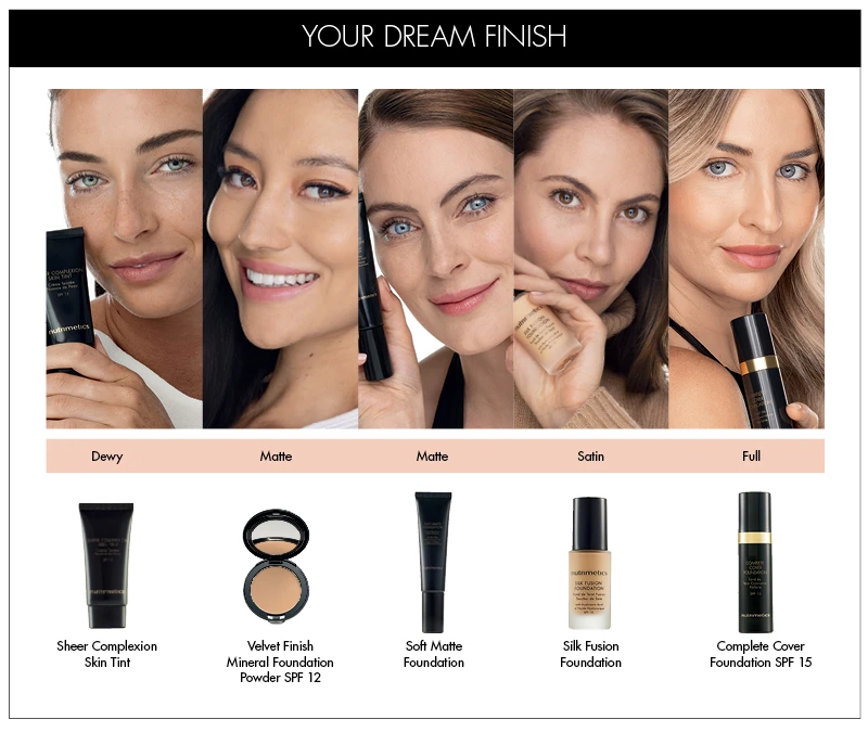 In this guide, we’ll help you discover how to choose the perfect Nutrimetics foundation for your skin type, tone and desired finish. Let’s begin.